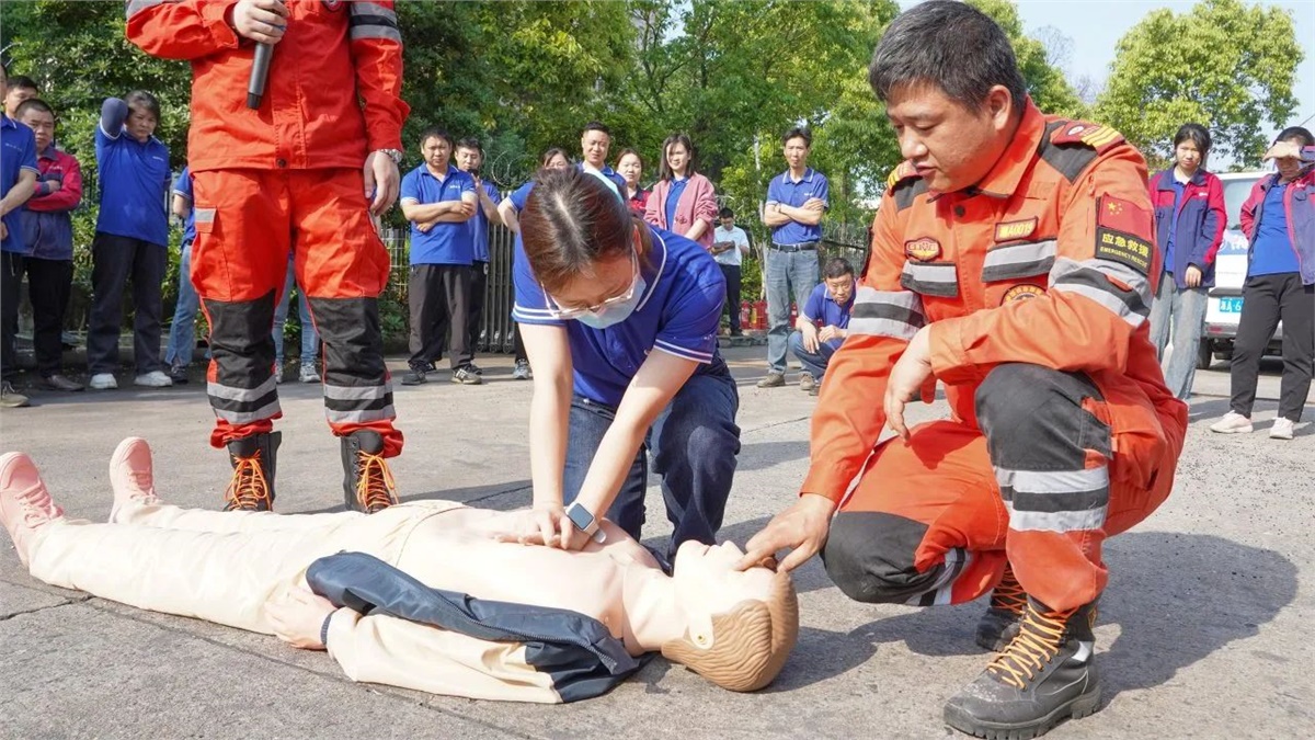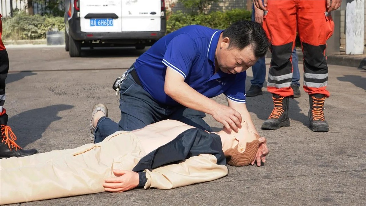 隨后,在現(xiàn)場(chǎng)設(shè)置的模擬“起火點(diǎn)”,大家有序排隊(duì)進(jìn)行了滅火器實(shí)操演練,以確保每位員工都能正確掌握滅火器的使用方法。同時(shí),現(xiàn)場(chǎng)也模擬了心肺復(fù)蘇(CPR)急救和有限空間作業(yè)應(yīng)急救援等場(chǎng)景,完整呈現(xiàn)了“火災(zāi)發(fā)生—緊急疏散—現(xiàn)場(chǎng)救援—120轉(zhuǎn)運(yùn)”的全流程,整個(gè)實(shí)操演練過(guò)程組織嚴(yán)密、分工明確,達(dá)到了既定的演練目標(biāo)和成效。