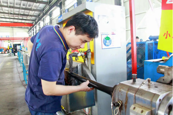 與其他組裝式的產(chǎn)品不同,后期檢查出現(xiàn)質(zhì)量問題,可以拆開重裝或更換零件,電纜的生產(chǎn)制造任何一個(gè)部件或工藝工序沒有達(dá)標(biāo),后期是無法挽回和彌補(bǔ)的。因此,電纜生產(chǎn)線上的每一個(gè)操作者都是關(guān)鍵人物。作為機(jī)組組長(zhǎng)的劉學(xué)文,深知自己肩上的重任,一旦進(jìn)入車間,他便絲毫不敢懈怠,總是在生產(chǎn)線之間來回走動(dòng),反復(fù)查看機(jī)器設(shè)備的運(yùn)轉(zhuǎn)情況、第一時(shí)間查看電纜成品質(zhì)量,快速發(fā)現(xiàn)問題,解決問題,避免不良品流入下一道工序,不僅保障了電纜質(zhì)量,而且有效提高了電纜的生產(chǎn)效率。