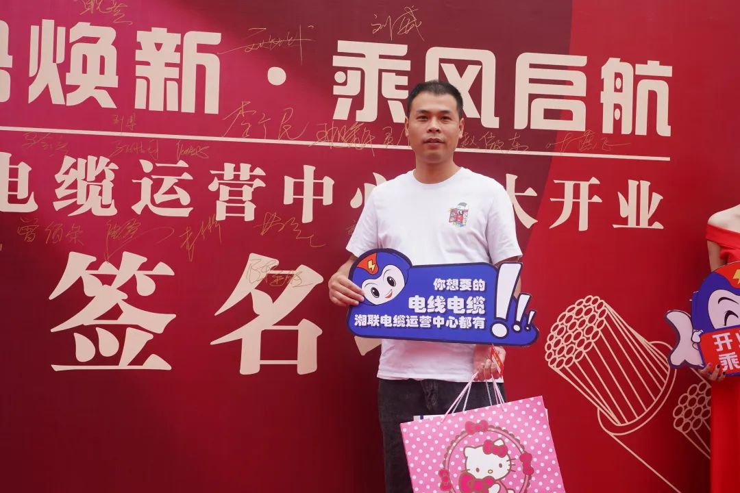 郴州市佳琪物資有限公司總經理許靈健許總作為經銷商代表在開業(yè)典禮上致賀詞,在發(fā)言中,他表達了對湘聯電纜的高度認可,并表示希望能夠和湘聯電纜一起,同心同行,一起筑造更美好的明天。