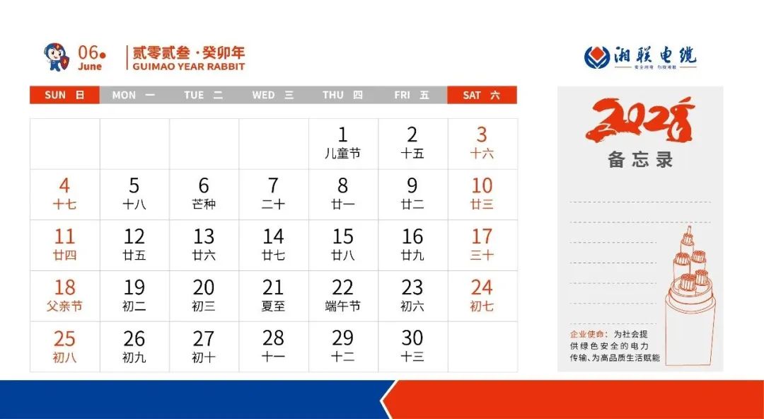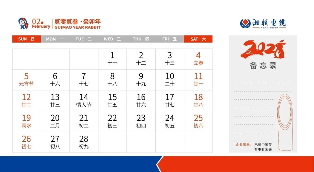 敬呈2023年湘聯(lián)電纜月歷