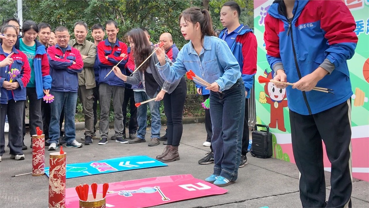 個(gè)人項(xiàng)目環(huán)節(jié)同樣精彩紛呈。“321請回答”猜歌游戲中,每當(dāng)旋律響起,參賽者們便凝神細(xì)聽,快速反應(yīng),搶占答題擂臺(tái),現(xiàn)場熱鬧非凡;投壺項(xiàng)目中,大家全神貫注,盡顯專注與沉穩(wěn),感受傳統(tǒng)運(yùn)動(dòng)的魅力;“公雞下蛋”項(xiàng)目更是引得全場笑聲不斷,成為當(dāng)天最受歡迎的項(xiàng)目之一。