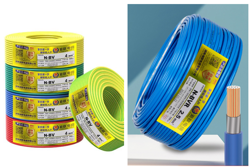 湘聯(lián)電纜N-BV線(銅芯聚氯乙烯絕緣耐火電線)和N-BVR線(銅芯聚氯乙烯絕緣耐火軟線),在聚氯乙烯絕緣層和銅線之間增加了一層云母帶,云母帶是一種耐火絕緣材料,具有優(yōu)良的耐高溫性能和耐燃燒性能。即使塑料外皮被燒壞,還有耐火層,也不會引起短路。在遇明火燃燒時基本不存在有害煙霧的揮發(fā)。