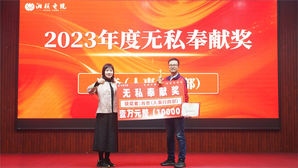 學(xué)先進(jìn)應(yīng)爭(zhēng)當(dāng)先進(jìn),趕先進(jìn)才能先進(jìn)輩出。公司的發(fā)展離不開(kāi)每一位恪盡職守、辛勤付出的優(yōu)秀湘聯(lián)人,在盛會(huì)上,對(duì)2023年度表現(xiàn)優(yōu)異的個(gè)人和團(tuán)隊(duì)進(jìn)行了一一表彰頒獎(jiǎng),頒發(fā)獎(jiǎng)項(xiàng)包含主人翁精神獎(jiǎng)、卓越功勛獎(jiǎng)、無(wú)私奉獻(xiàn)獎(jiǎng)等十二個(gè)獎(jiǎng)項(xiàng),獎(jiǎng)品包含商品房、現(xiàn)金、榮譽(yù)證書(shū)、獎(jiǎng)杯,激勵(lì)全體員工以先進(jìn)為榜樣,向優(yōu)秀靠近,2024年再創(chuàng)佳績(jī)。