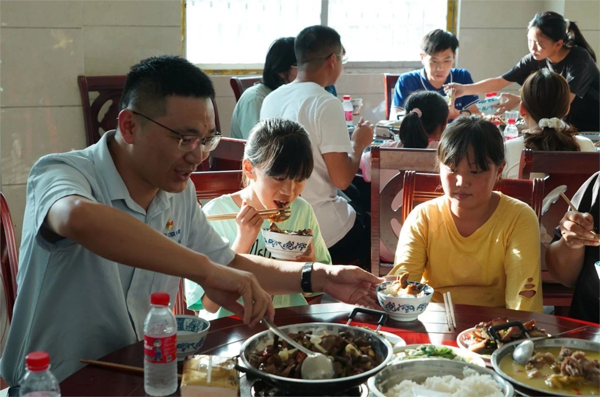 助學(xué)不僅是物質(zhì)上的援助,更重要的是對(duì)孩子們精神上的激勵(lì)與引導(dǎo)。為了拉近與受助學(xué)生的情感距離,在瀏陽經(jīng)開區(qū)駐苗兒灘幫扶工作隊(duì)和苗兒灘政府的協(xié)調(diào)幫助下,8月22日傍晚,湘聯(lián)電纜“芯”光助學(xué)基金會(huì)邀請(qǐng)受助孩子和其家長(zhǎng)們來到苗兒灘政府,通過一起吃晚餐和開展座談會(huì)的形式,與受助學(xué)生面對(duì)面交流,了解他們的學(xué)習(xí)和生活情況,并鼓勵(lì)學(xué)生們要立志向上,好好學(xué)習(xí),砥礪成才。